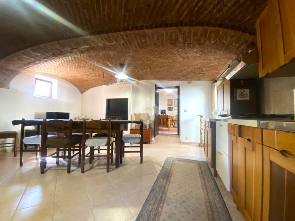 Il piano terra è composto da una cucina collegata a un caratteristico locale tavernetta, impreziosito da volte in mattoni a vista e da un camino che, oltre alla funzione termica (con bocchette di canalizzazione dell’aria nelle varie stanze), diventa un elemento di grande fascino e arredo.