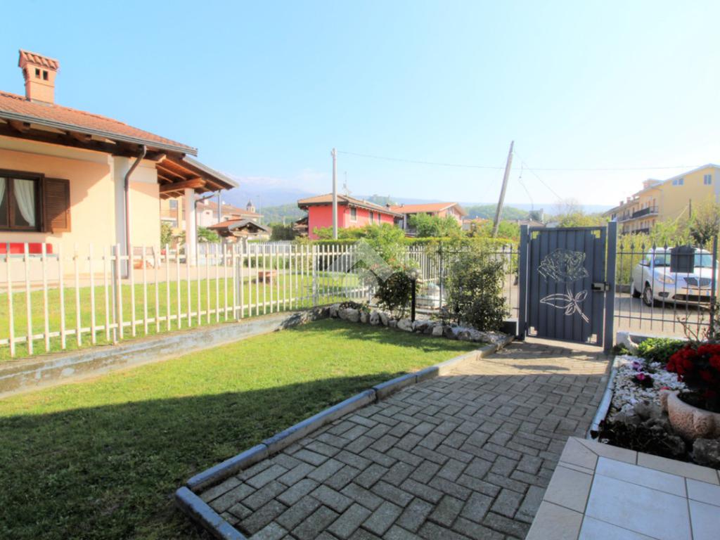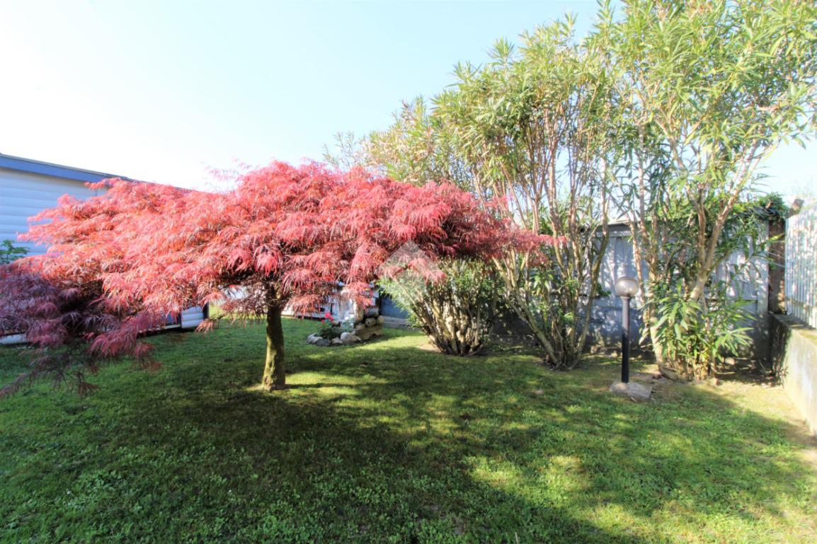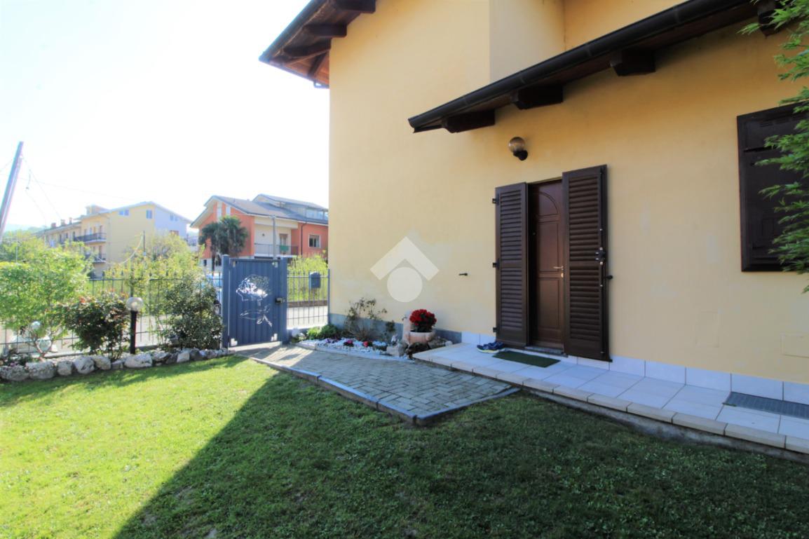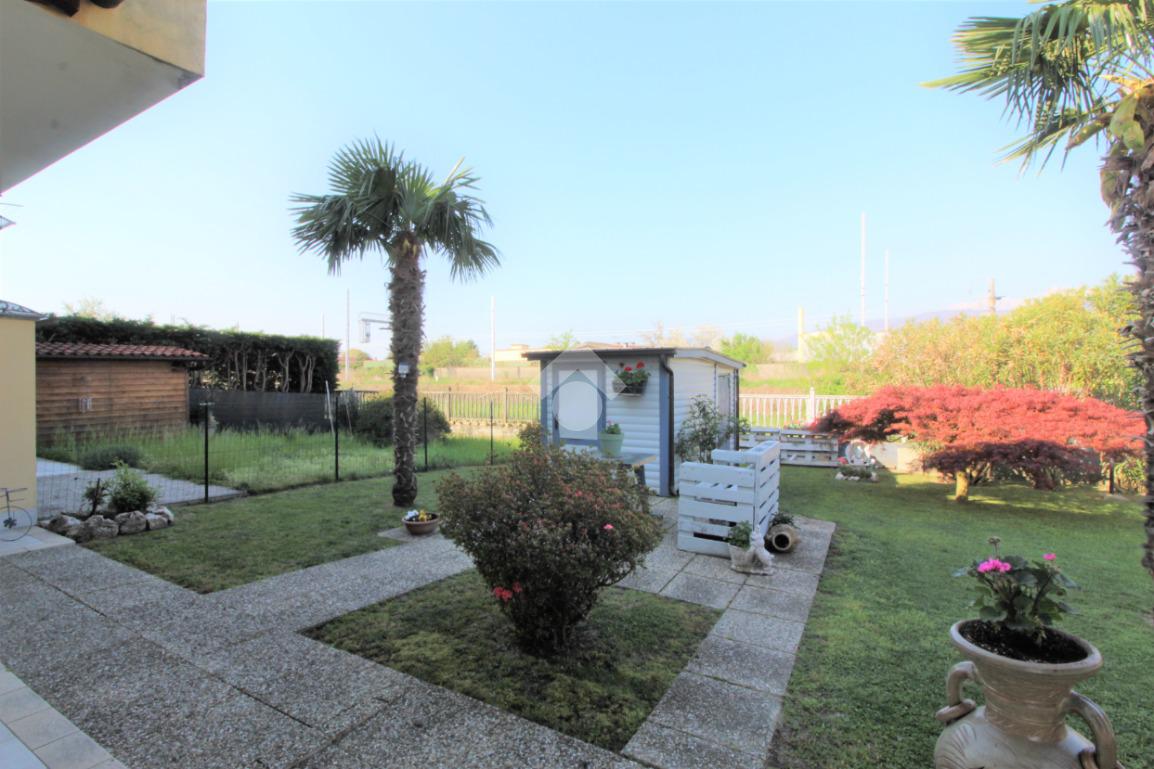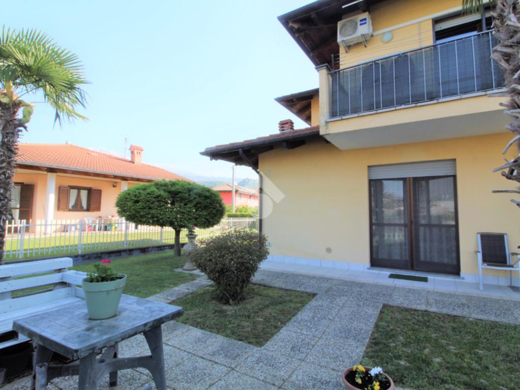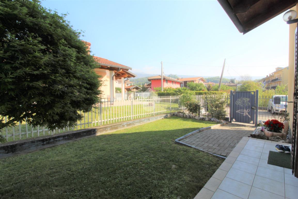 Tramite portoncino blindato si accede all'unità abitativa composta di ingresso living in soggiorno con angolo cottura con uscita diretta in giardino, disimpegno, due camere da letto e bagno con finestra e doccia. Completa la proprietà il box auto.