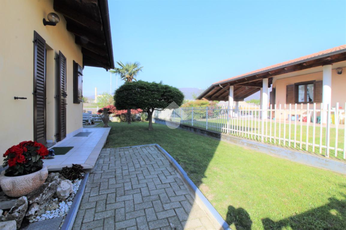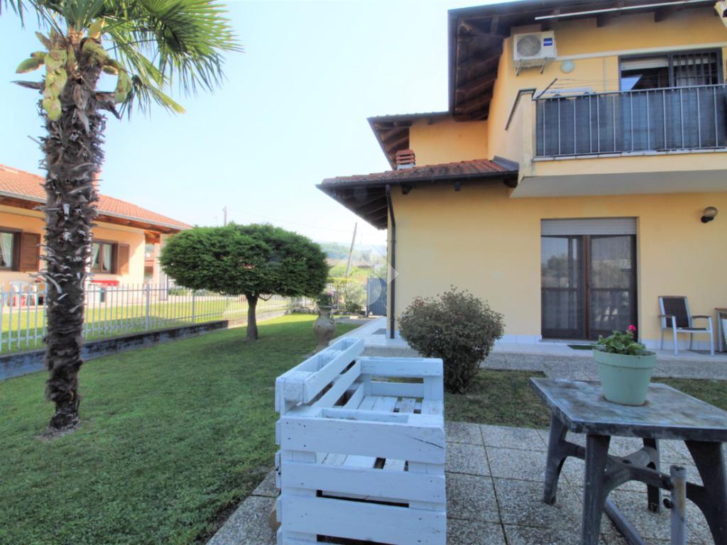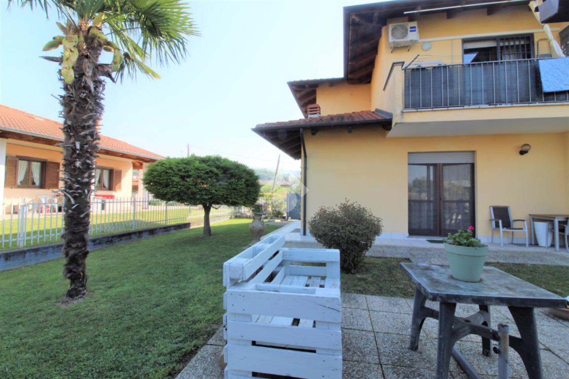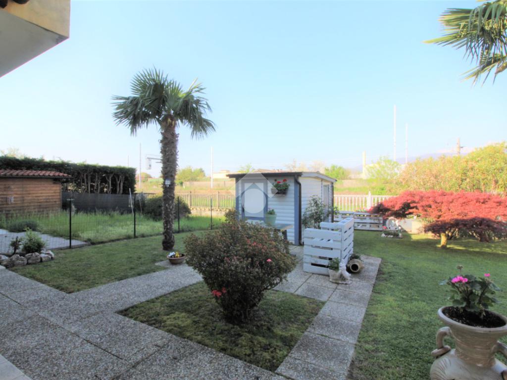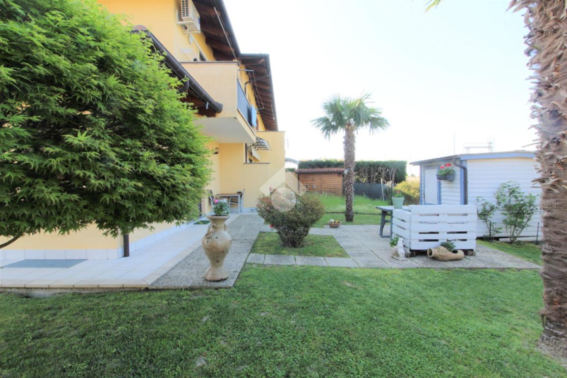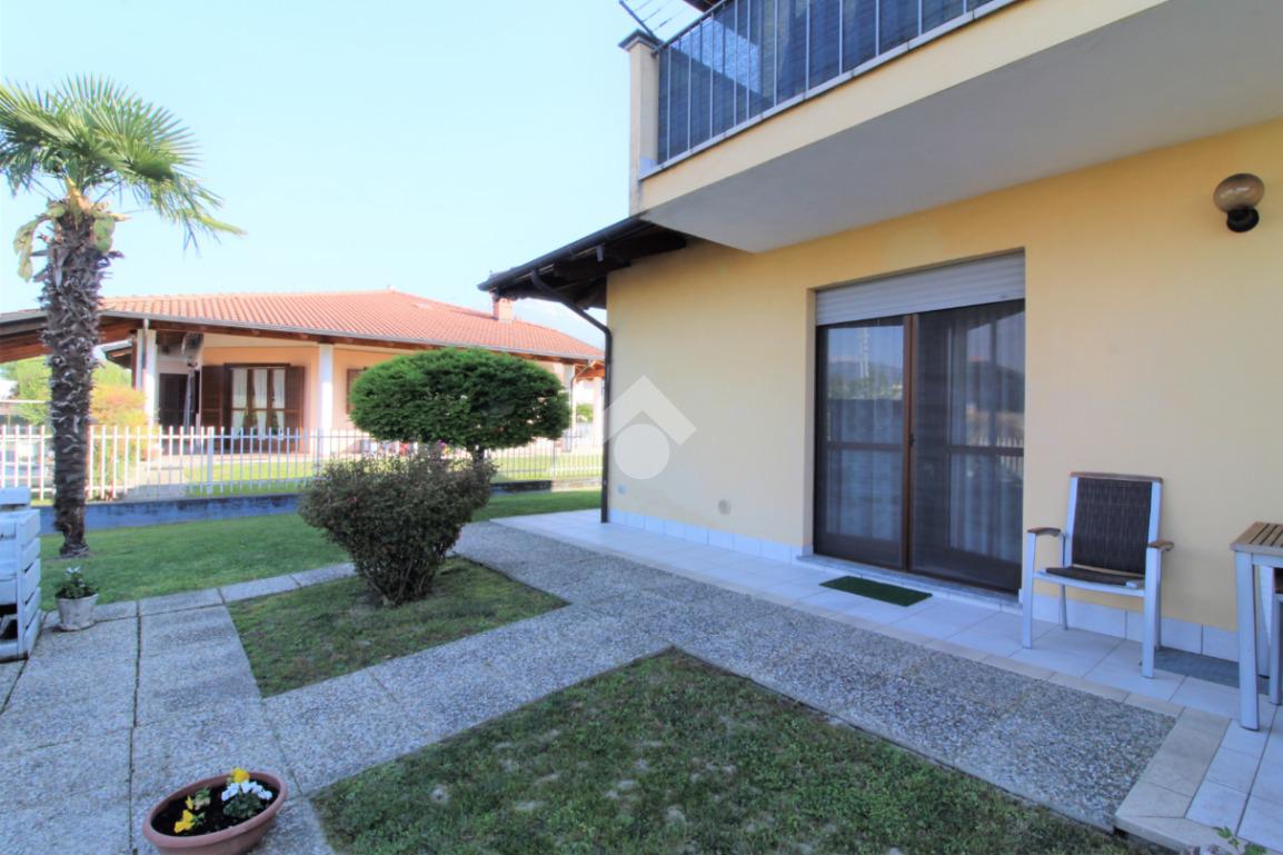 Tramite portoncino blindato si accede all'unità abitativa composta di ingresso living in soggiorno con angolo cottura con uscita diretta in giardino, disimpegno, due camere da letto e bagno con finestra e doccia. Completa la proprietà il box auto.