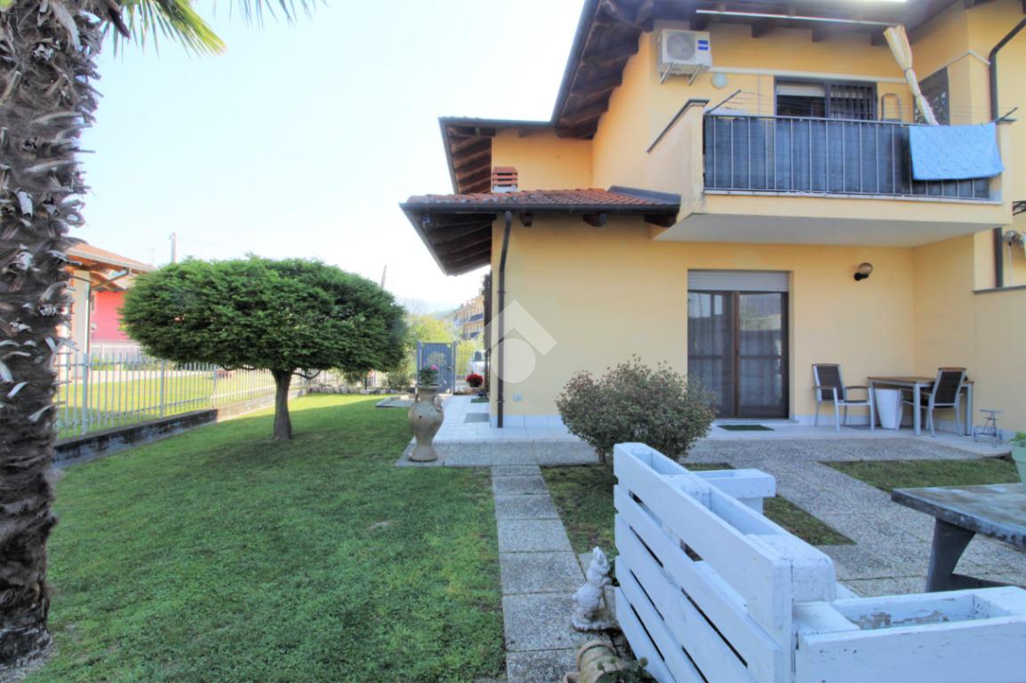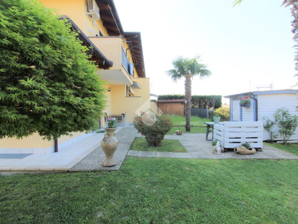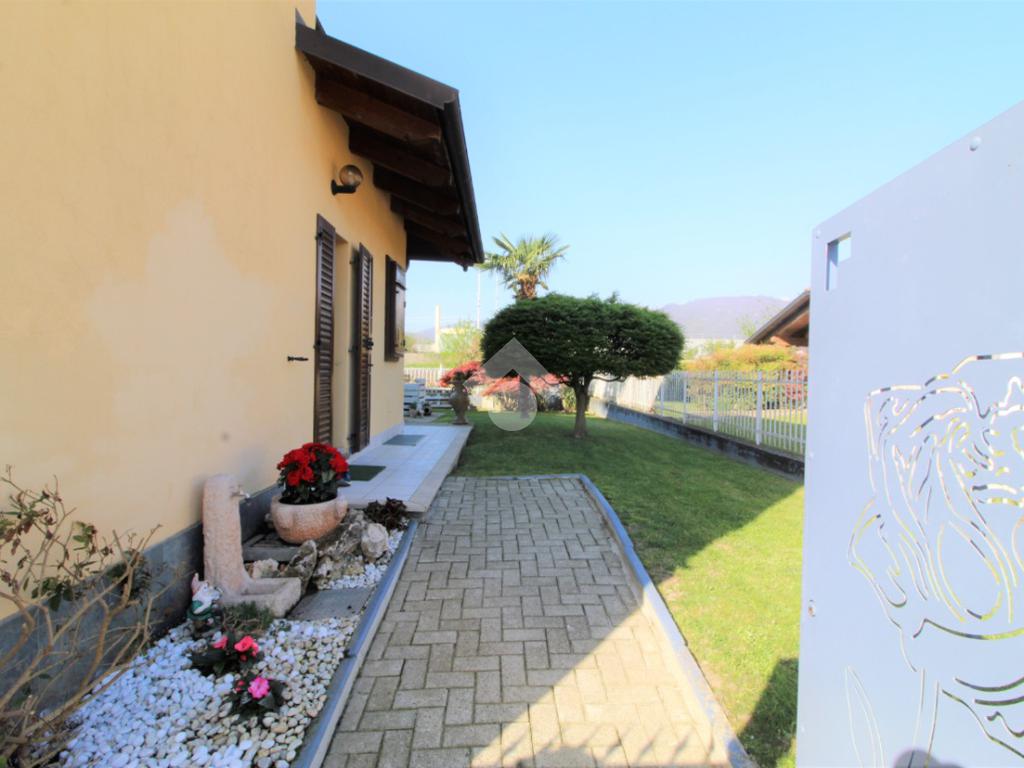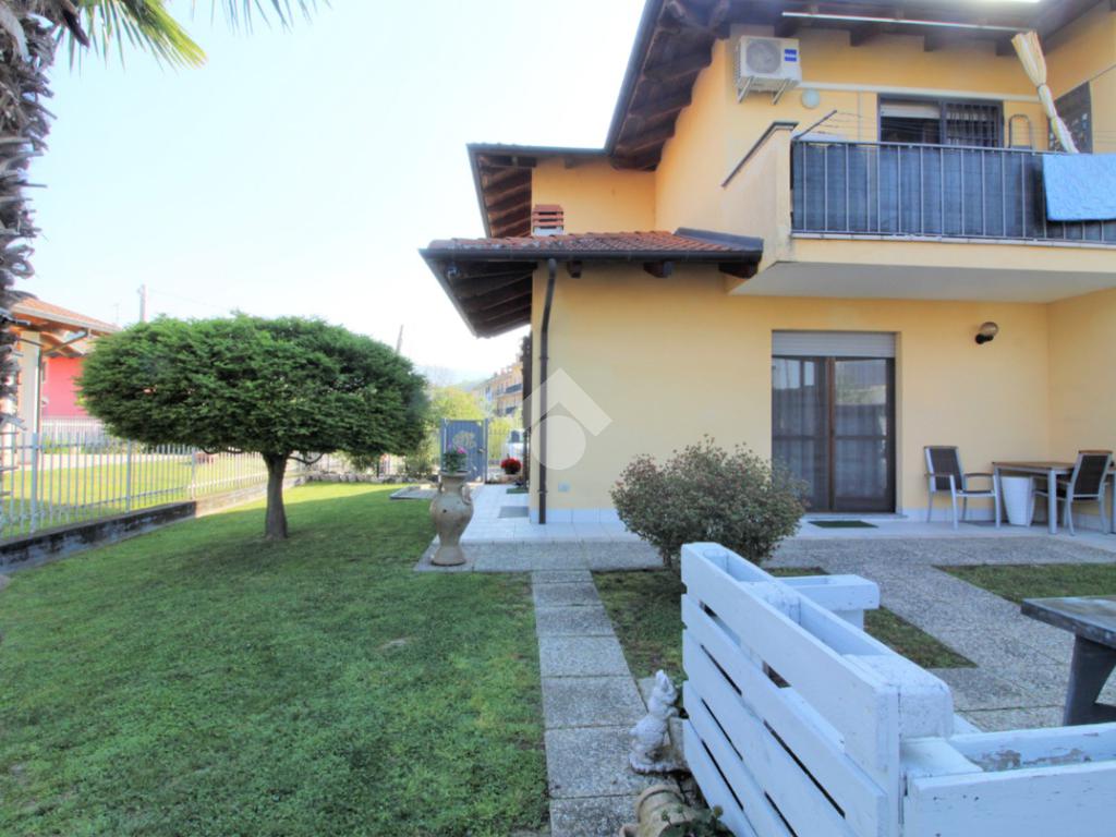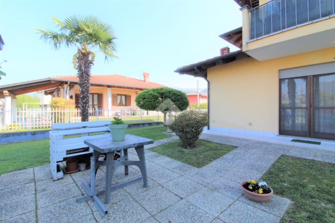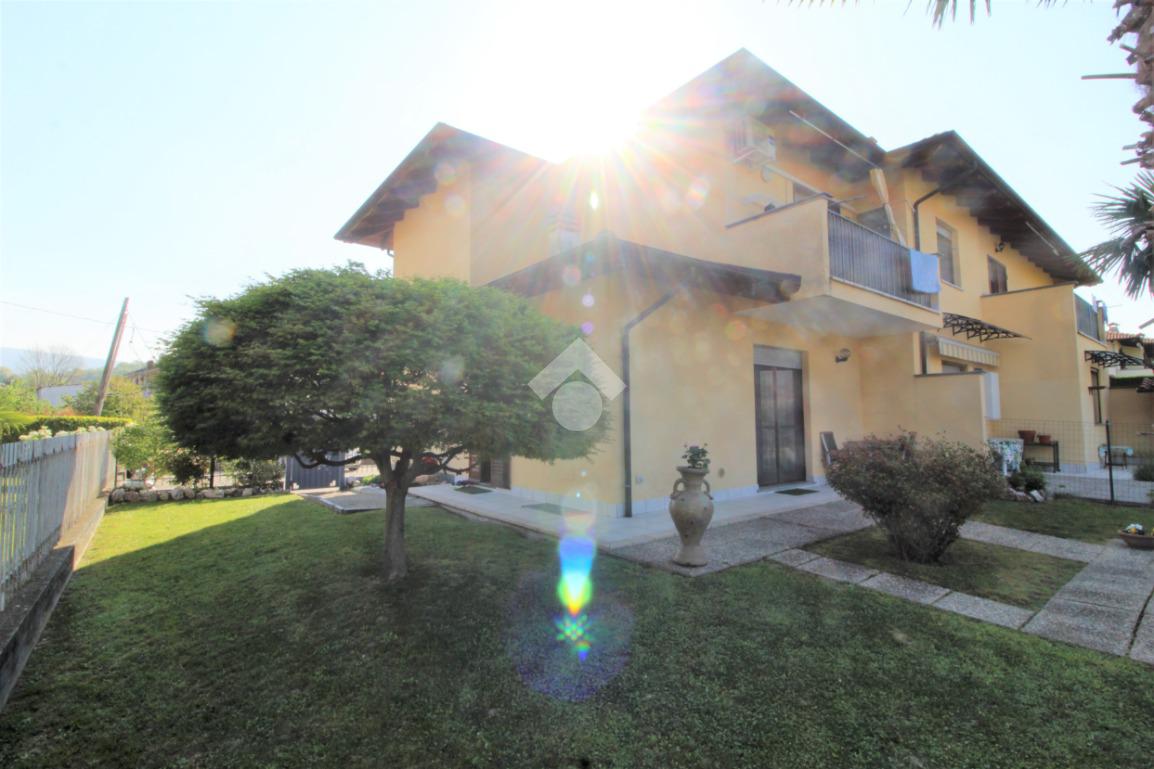 Tramite portoncino blindato si accede all'unità abitativa composta di ingresso living in soggiorno con angolo cottura con uscita diretta in giardino, disimpegno, due camere da letto e bagno con finestra e doccia. Completa la proprietà il box auto.