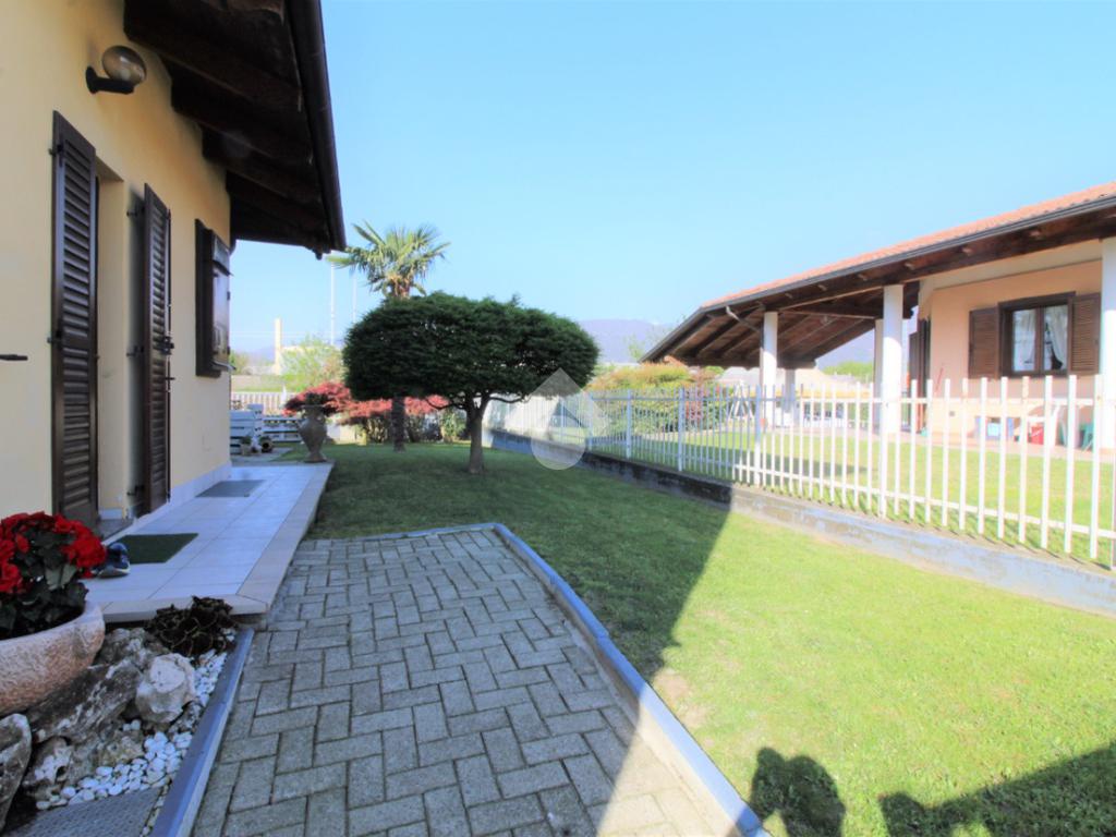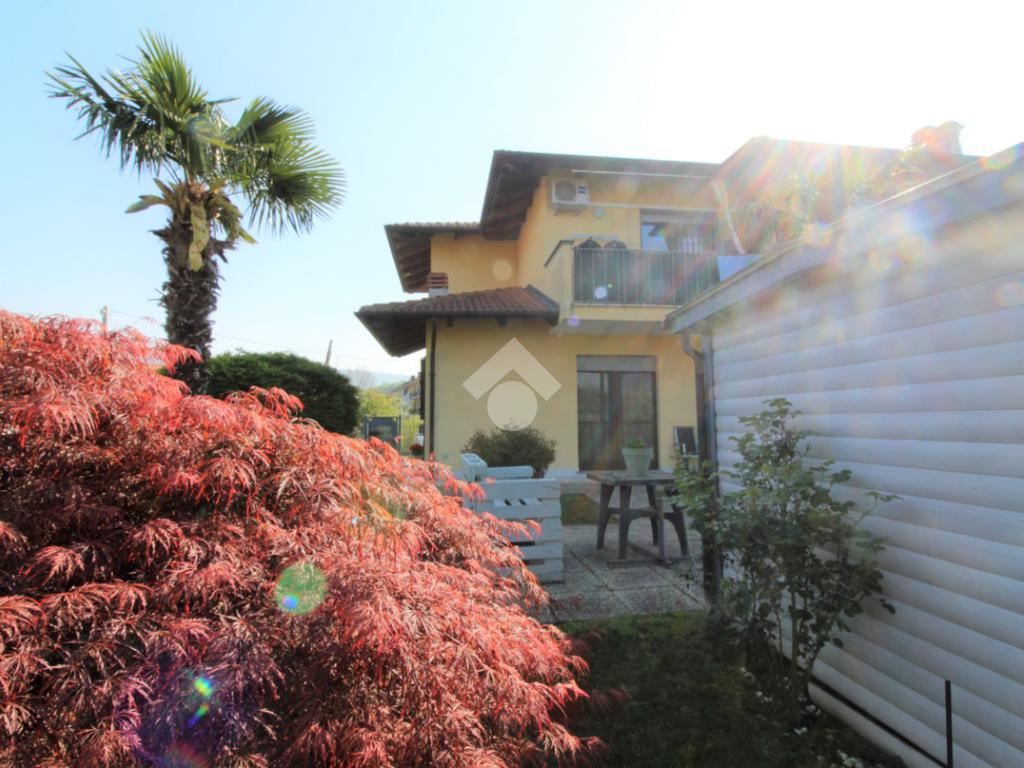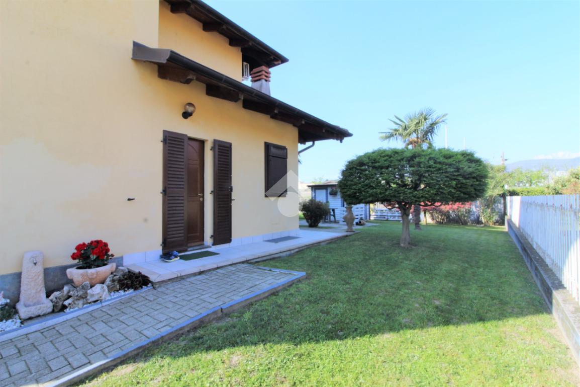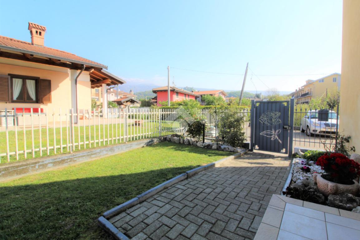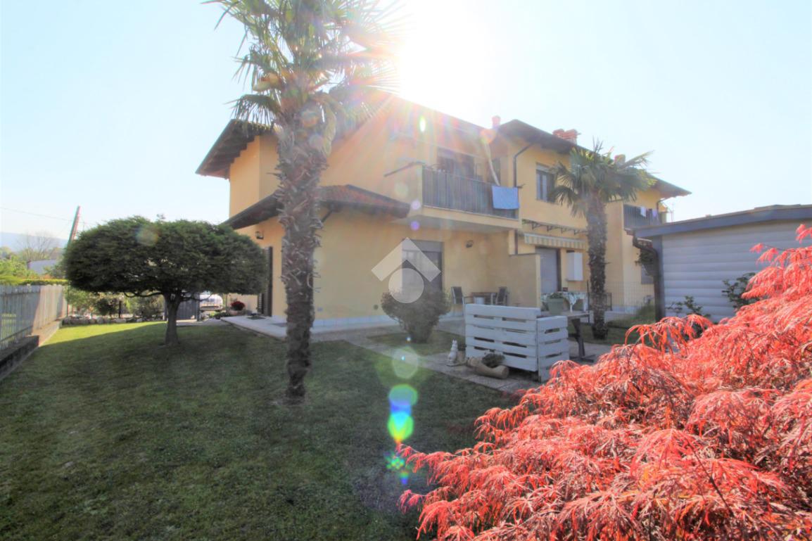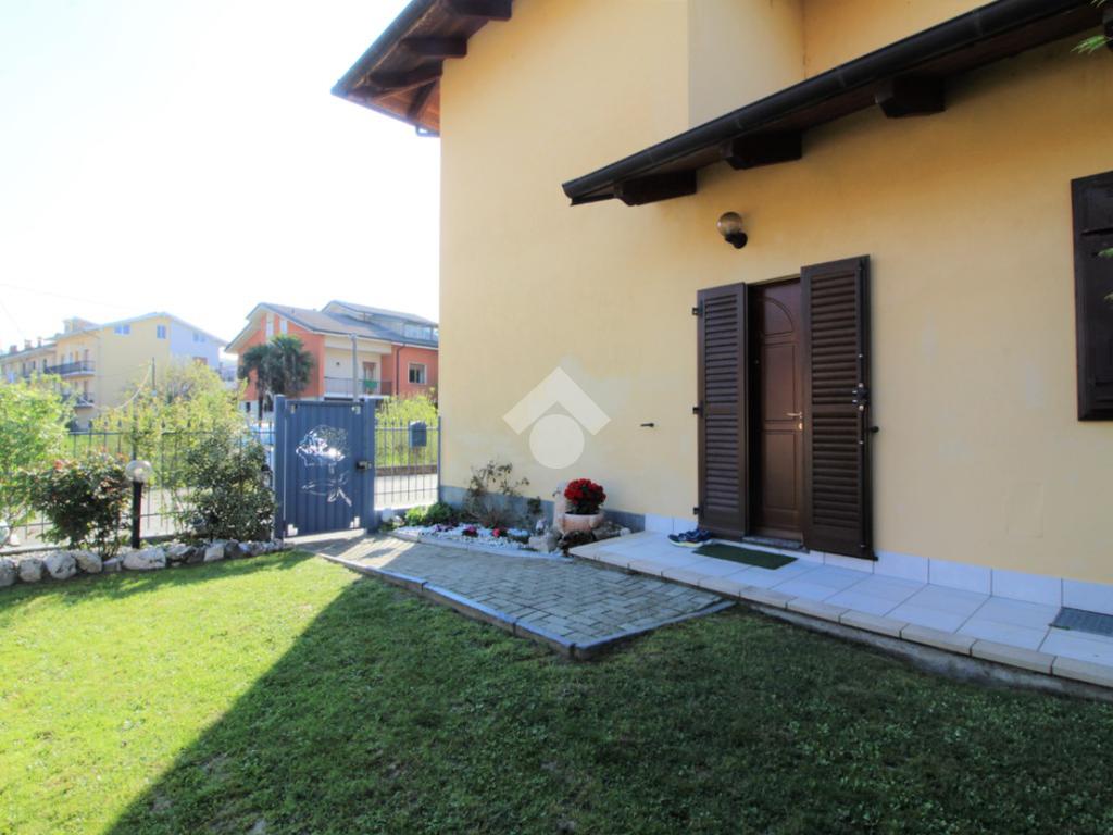 Tramite portoncino blindato si accede all'unità abitativa composta di ingresso living in soggiorno con angolo cottura con uscita diretta in giardino, disimpegno, due camere da letto e bagno con finestra e doccia. Completa la proprietà il box auto.